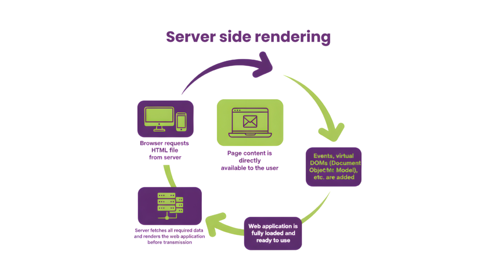 Server-side rendering (SSR) fixes this by processing JavaScript on your server before sending fully-rendered HTML to crawlers. Here’s what you get: